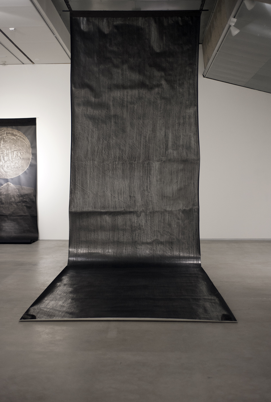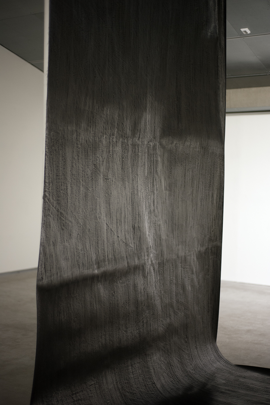 Piirustusprosessin aikana kaikki on käsin kosketeltavana tässä hetkessä. Mittakaava haastaa kehon fysiikan ja sen ulottuvuudet; jatkuvaa kurkottamista, edestakaista liikettä ja toistoa, hiilen hankaamista syvälle paperin huokosiin, grafiitin kiillottamista painavalla pyöreällä kivellä. Näin muotonsa saavat maisemat kuuluvat toiseen maailmaan, sormien läpi virtaavaan, otetta pakenevaan. Jonnekin utuiseen ja hämärään, kaukaisiin