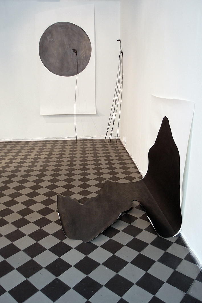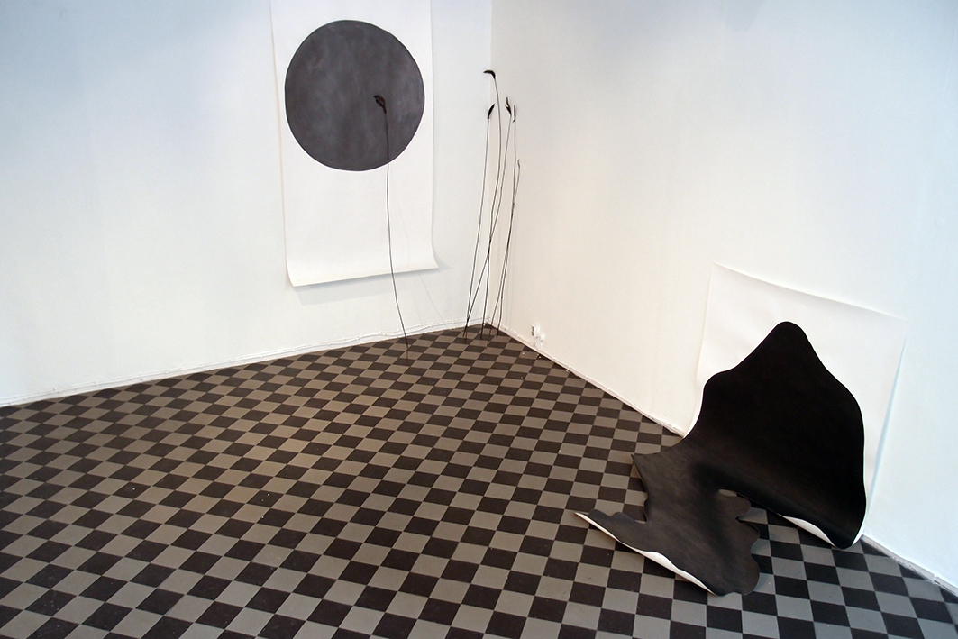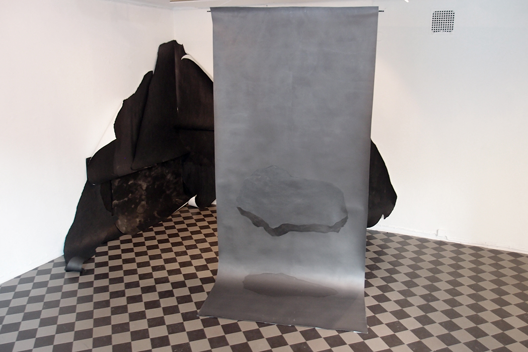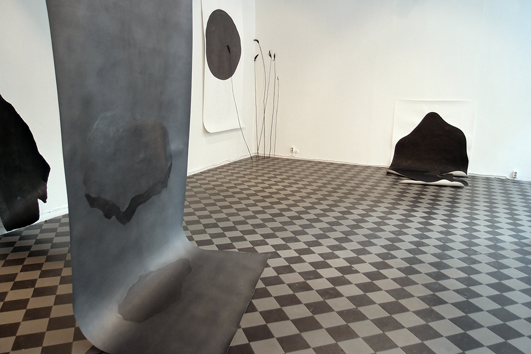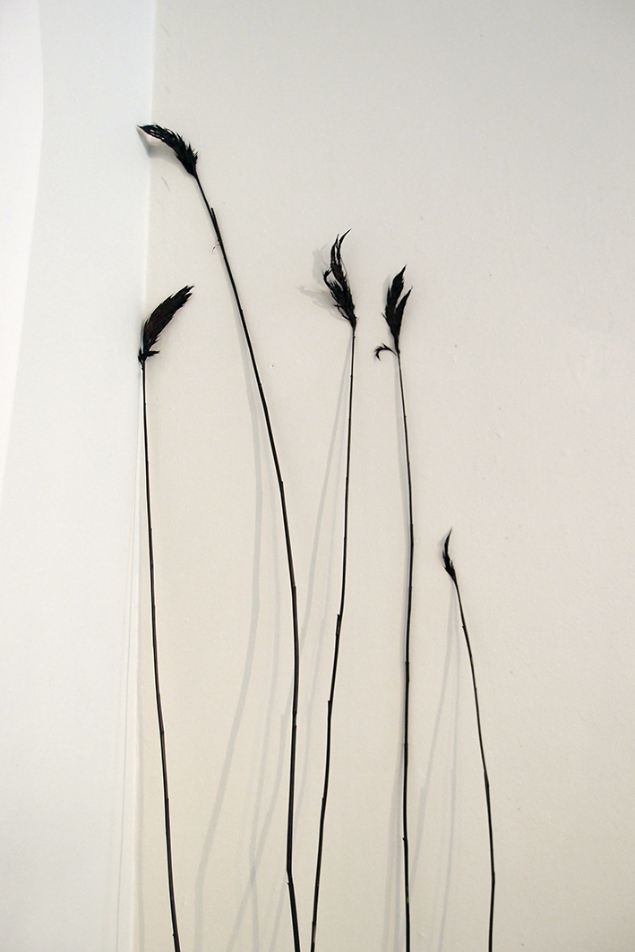 Solo exhibition at B-galleria, Turku, FI, 2018. Drawing installation, graphite and ink on paper, sea reeds. Photos: Maria Pääkkönen