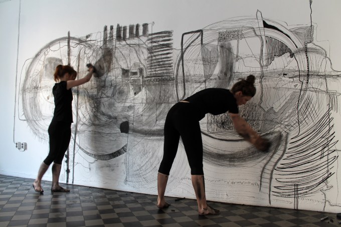 In B-galleria Ingeborg and Maria will join their forces into one and present a durational drawing, open process and installation. The performance is based on improvisation, possibilities, uncertainty and reacting to each other and whatever appears by drawing.